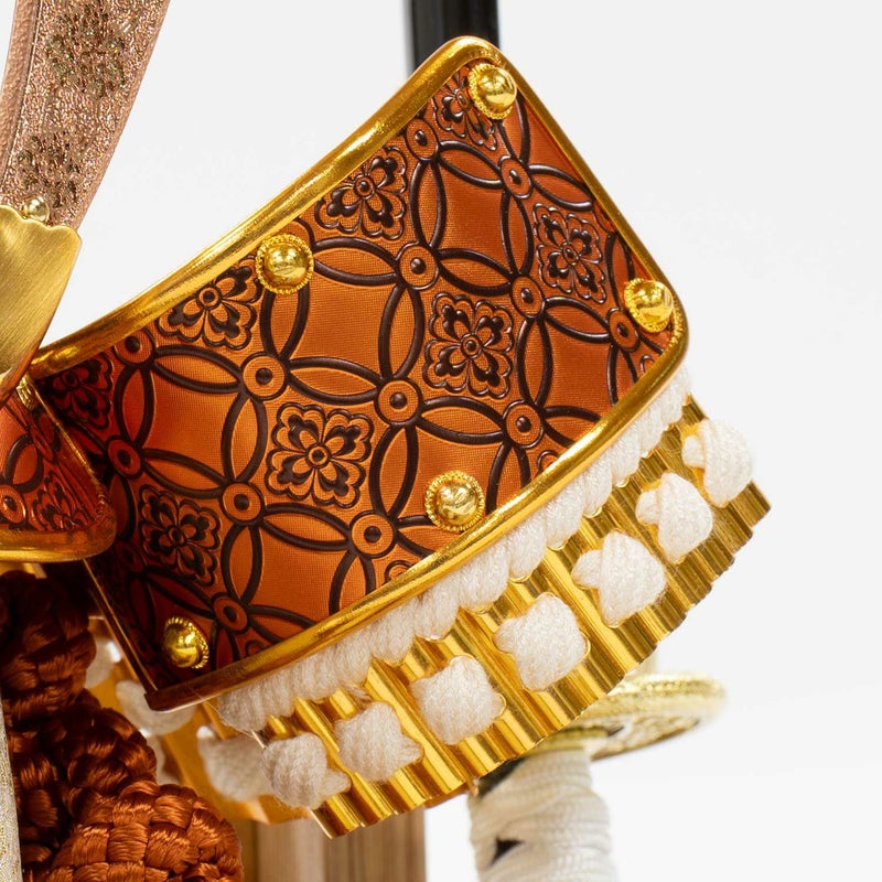 ■兜の鍬形には、牡丹柄の装飾を施し、華やかな兜に仕上げました。