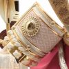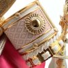 鍬形には牡丹の柄を施し、ケース背景には松竹梅の柄を描き、縁起の良いケース飾りになりました。牡丹の花言葉には”王者の風格”があるように、百花の王とされる大きな花を咲かせます。