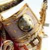 牡丹の柄を吹返しや由弦月形の前立てに牡丹の柄を施した兜が印象的なケース飾です。