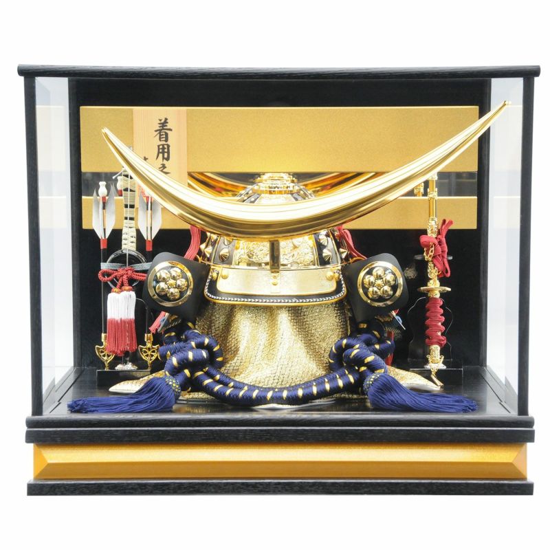弦月形の前立てを立体的に仕上げたこだわりのケース入り飾りです。