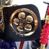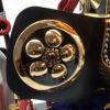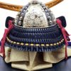 伊達政宗公の兜を模した、被ることの出来る着用兜ケース入り飾りです。吹返しには伊達家の家紋が入っています。