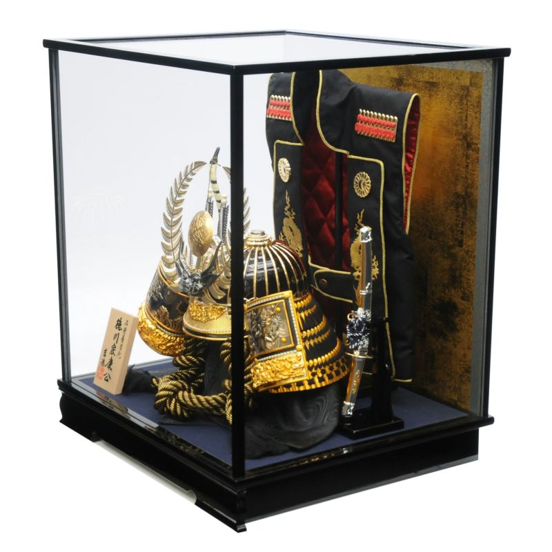 徳川家康公の兜の特徴である歯朶(シダ)の葉は精工に仕上げられており、真ん中には葵の紋が施された豪華着用兜ケース入り飾りです。