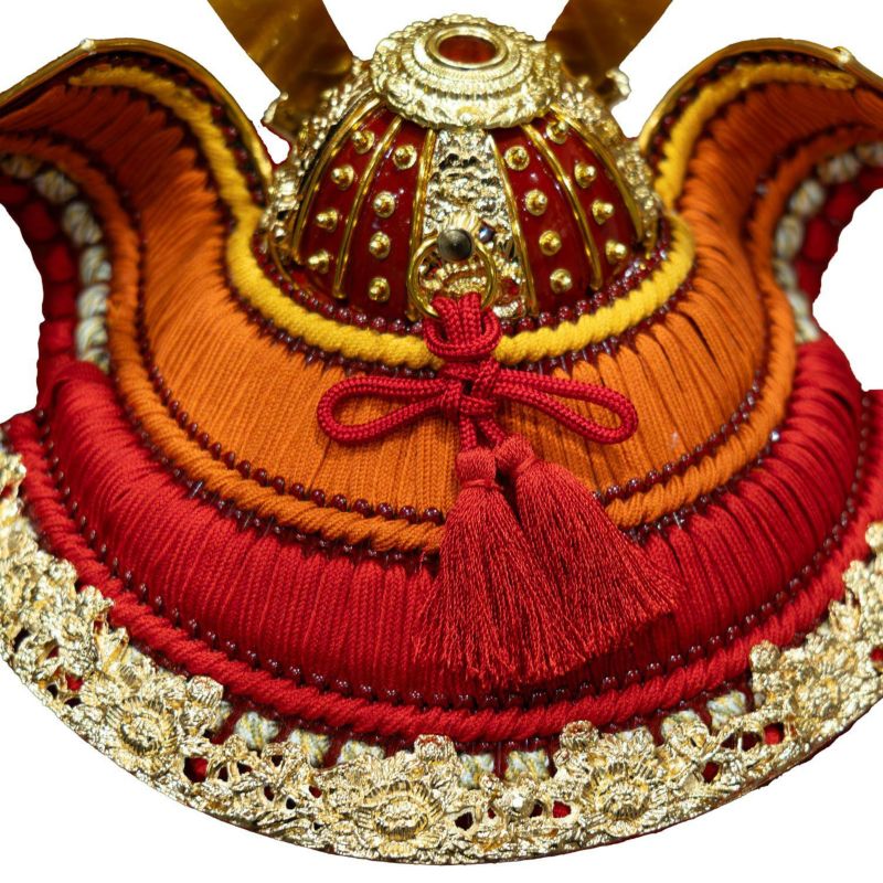 存在感ある曙裾濃縅の兜を用いた兜収納箱飾りです。