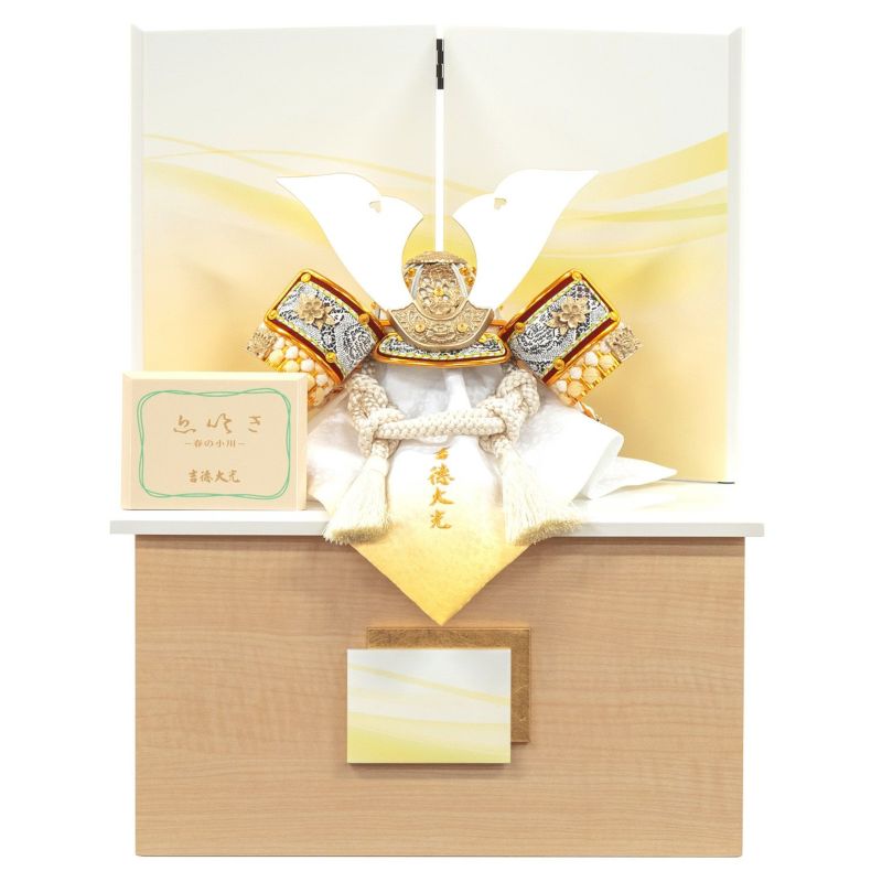 暖かな春の陽をイメージしたモダンな印象の兜収納箱飾りです。
