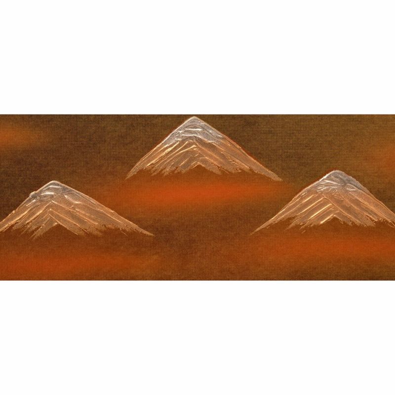 背景に盛り上げで描いた力強い連山が、美しい兜を引き立てます。