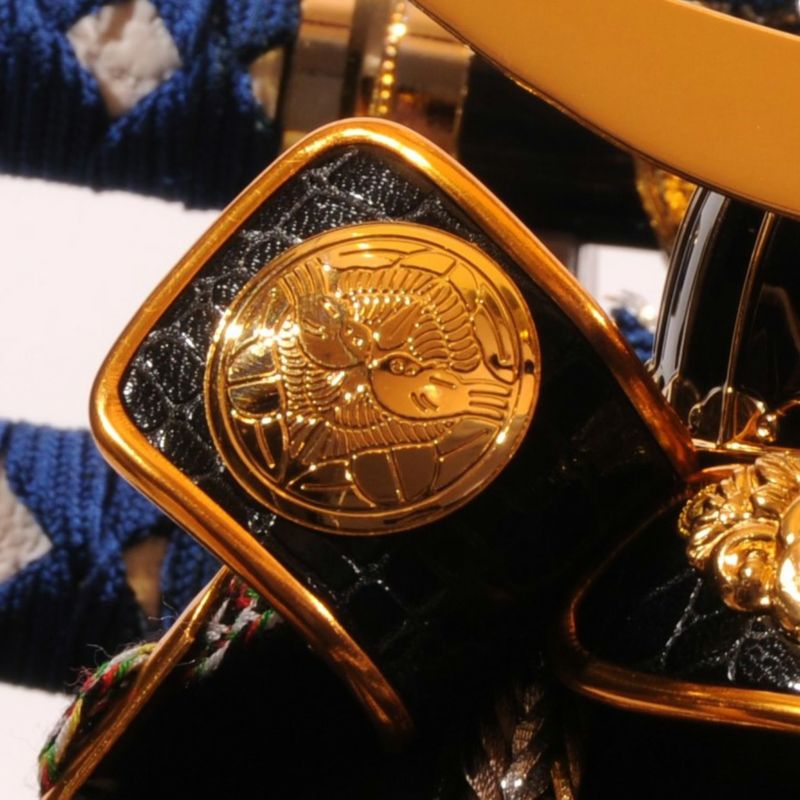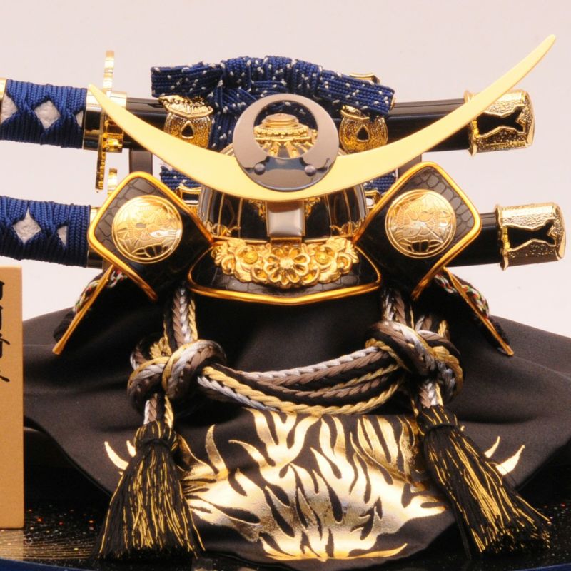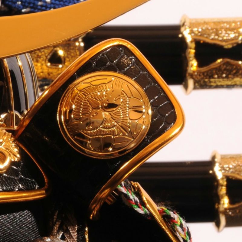 兜の後ろに大小の太刀を添え、勇ましさを加えました。