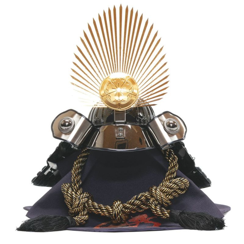黒札に黒絲で縅した織田信長公の織田木瓜前立兜。