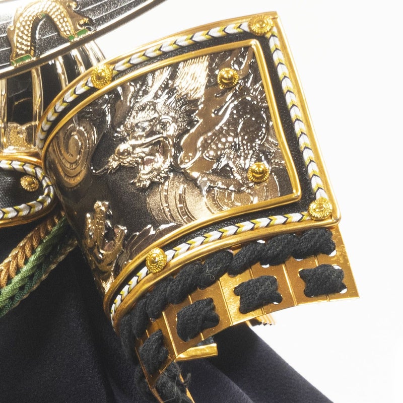 ■弦月形が印象的な前立には「龍」の装飾を施しました。