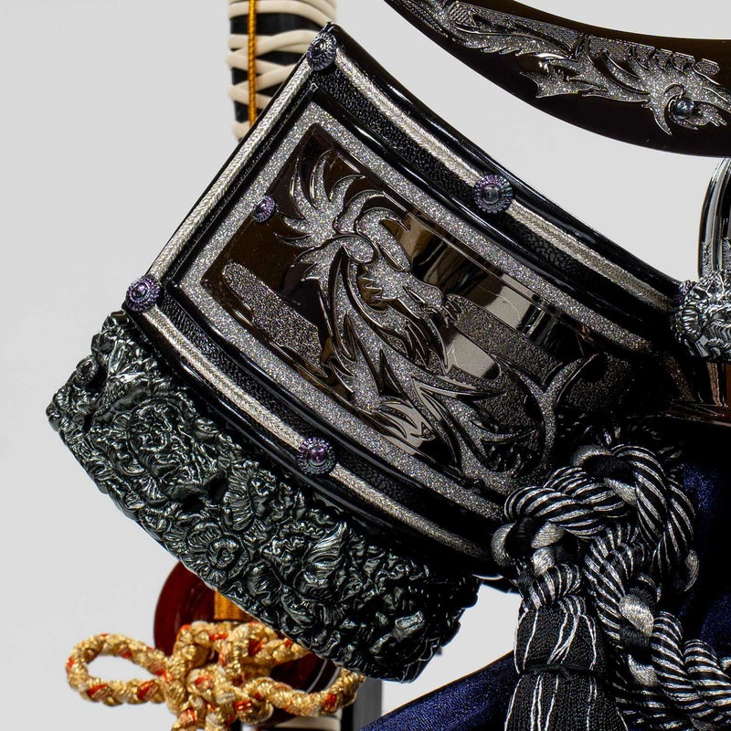 ■兜の前に配した、大小太刀がより勇ましさを引き立てます。