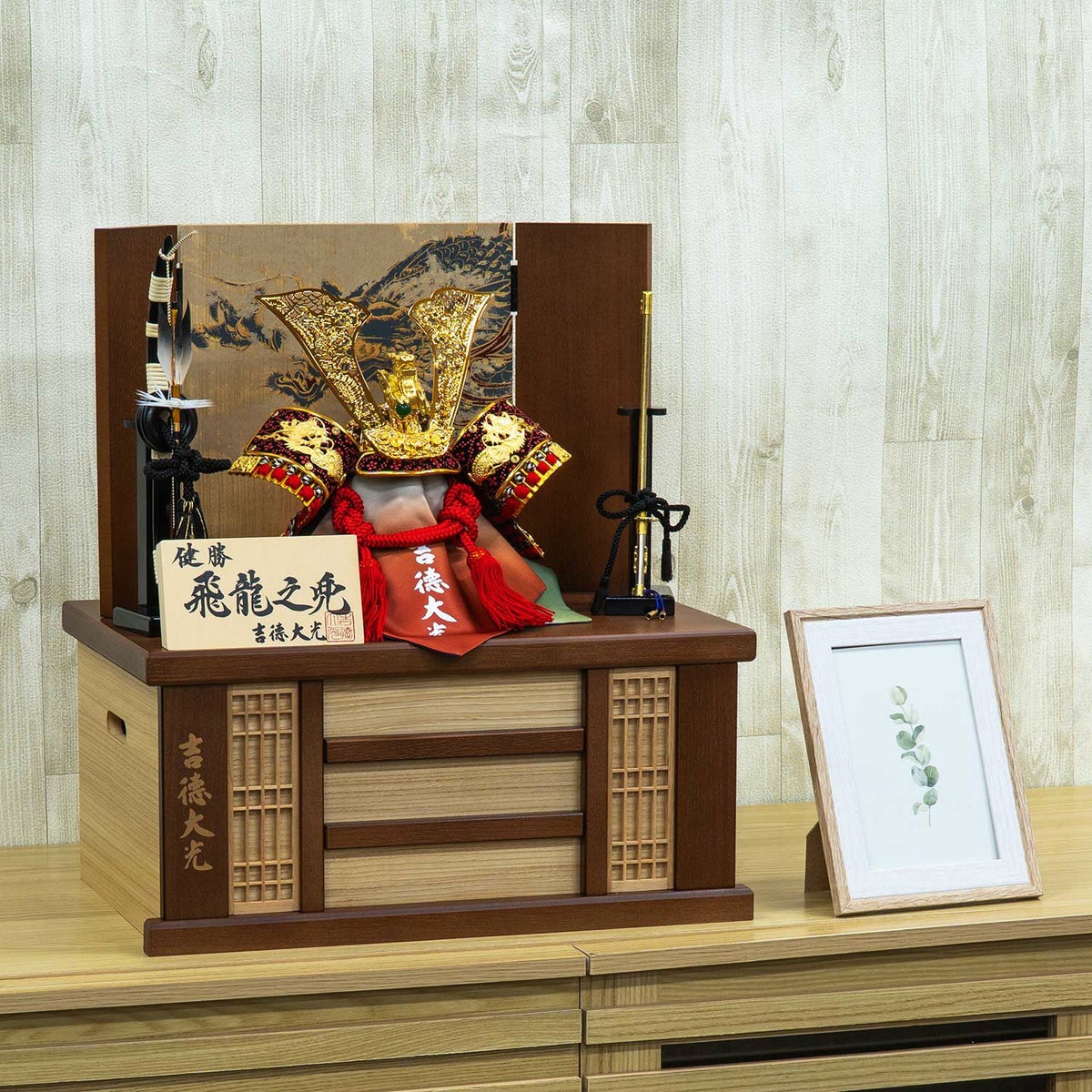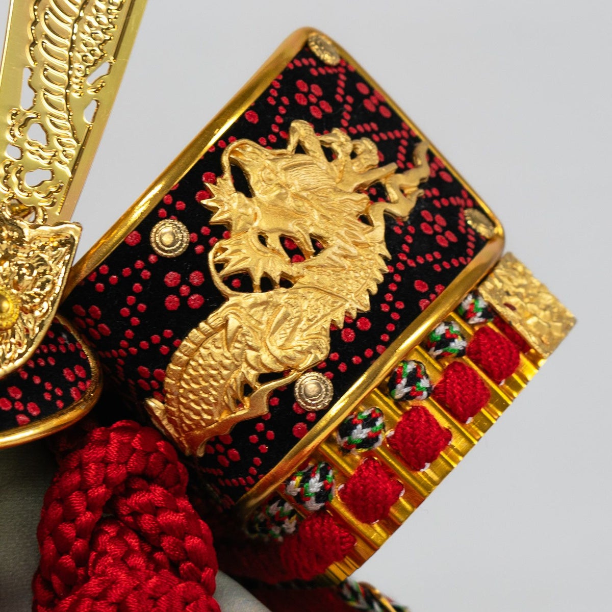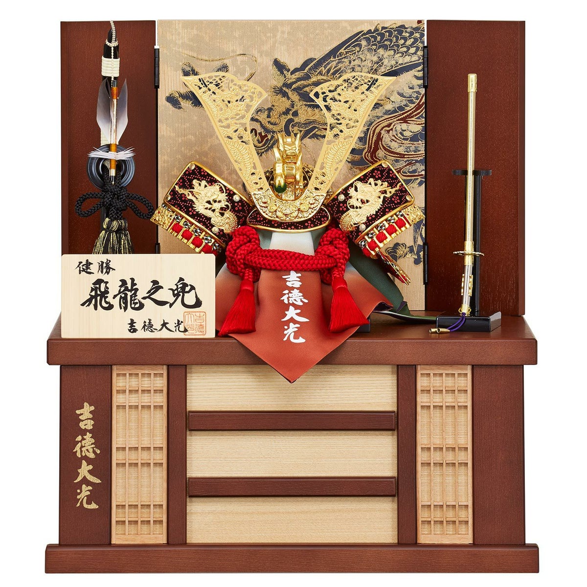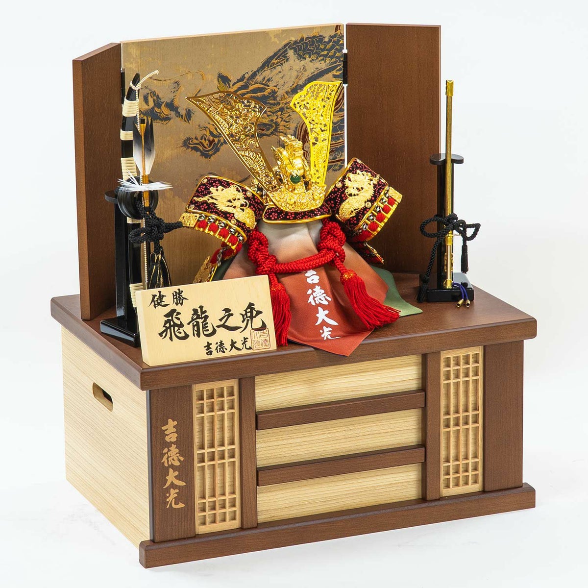【五月人形】正絹赤絲縅 飛龍之兜 13号高床台飾り