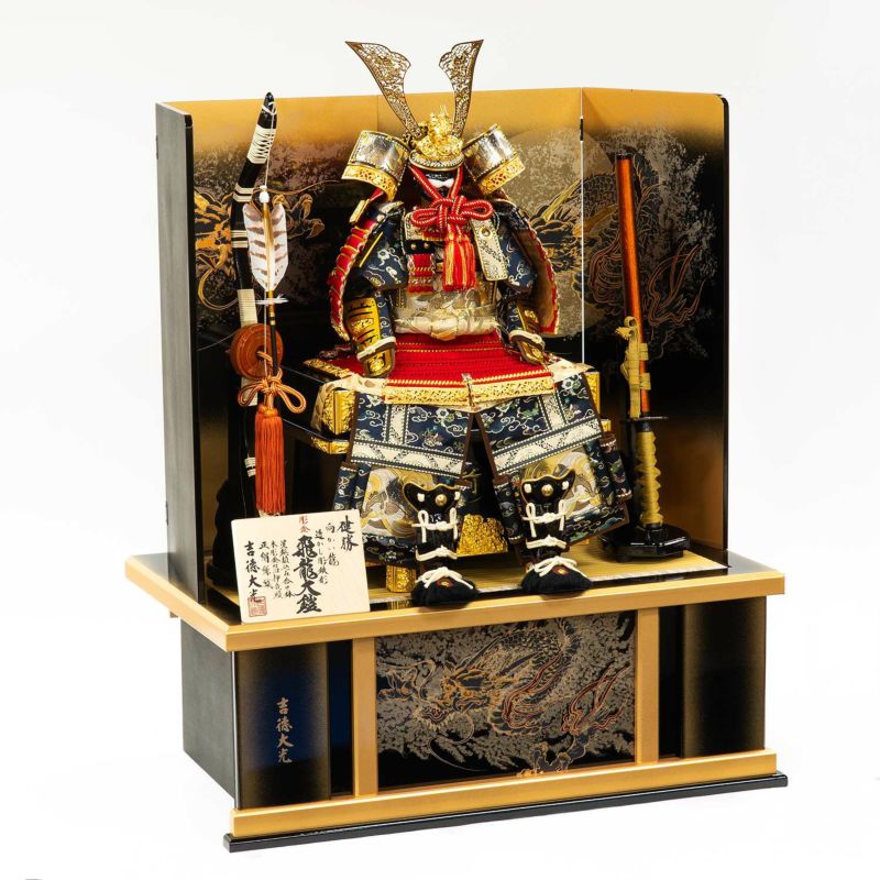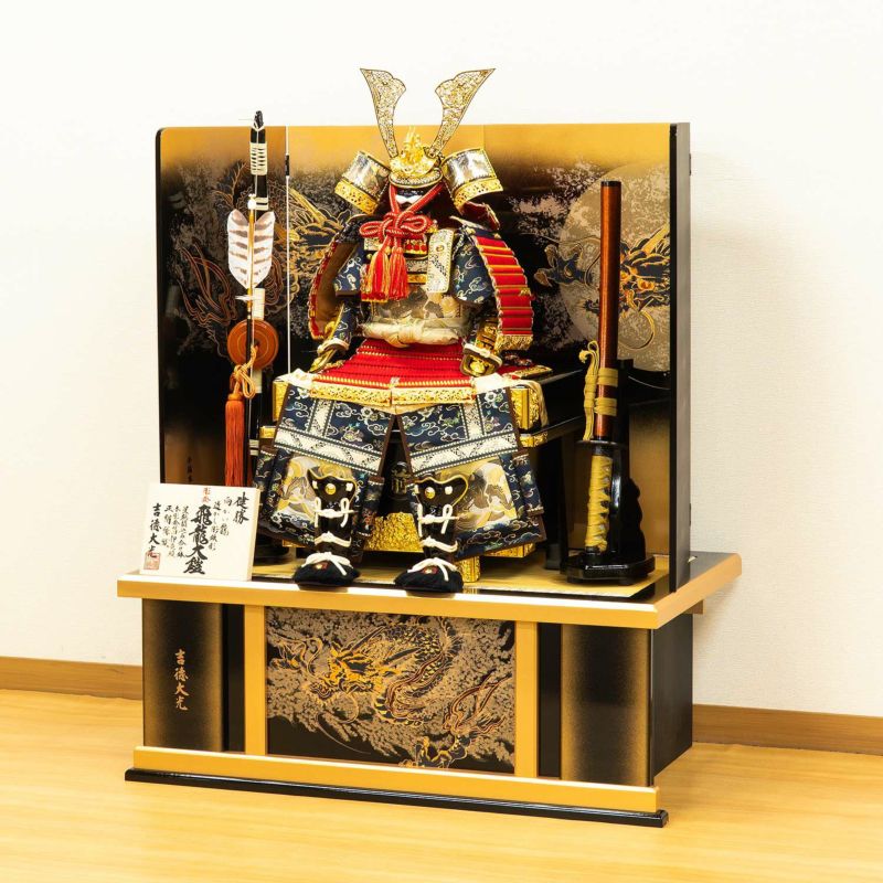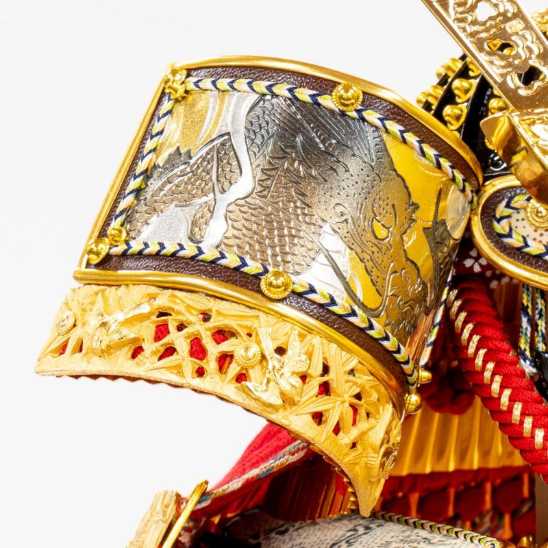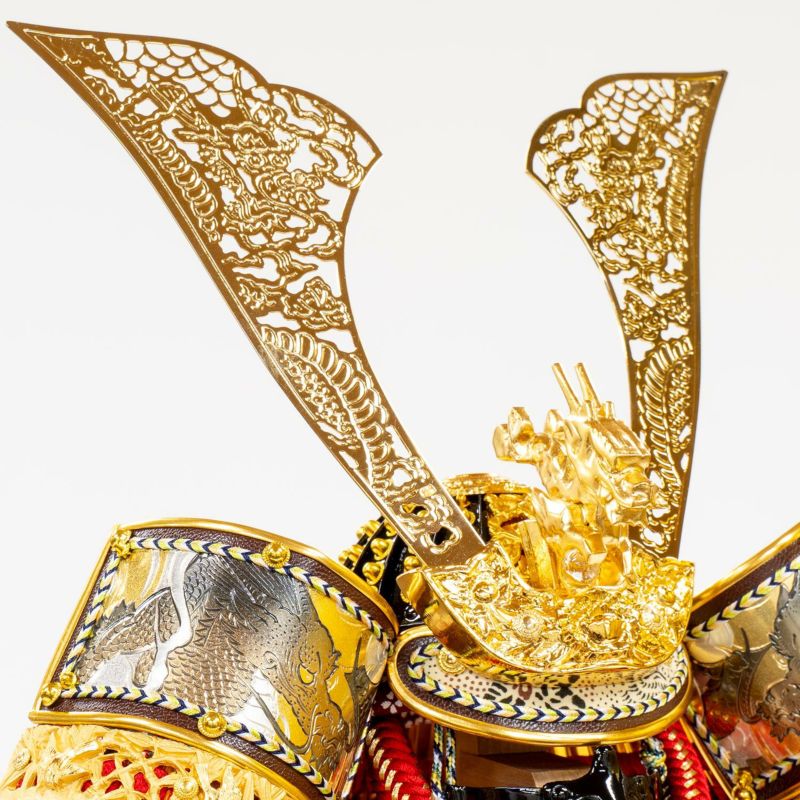 彫金や透かし鍬形。龍をテーマにした迫力ある「飛龍之鎧高床台飾り」です。