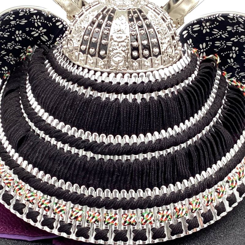 銀小札黒絲縅の立体大鍬形兜です。
