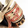「小札」(こざね)または「札」とは、甲冑を構成している小さな短冊状の板のことです。また、絲(いと)でつなぎ合わせることを縅(おどす)すといい、その絲(いと)を縅絲(おどしいと)と呼びます。 この縅の色柄によって〇〇縅と呼ばれます。