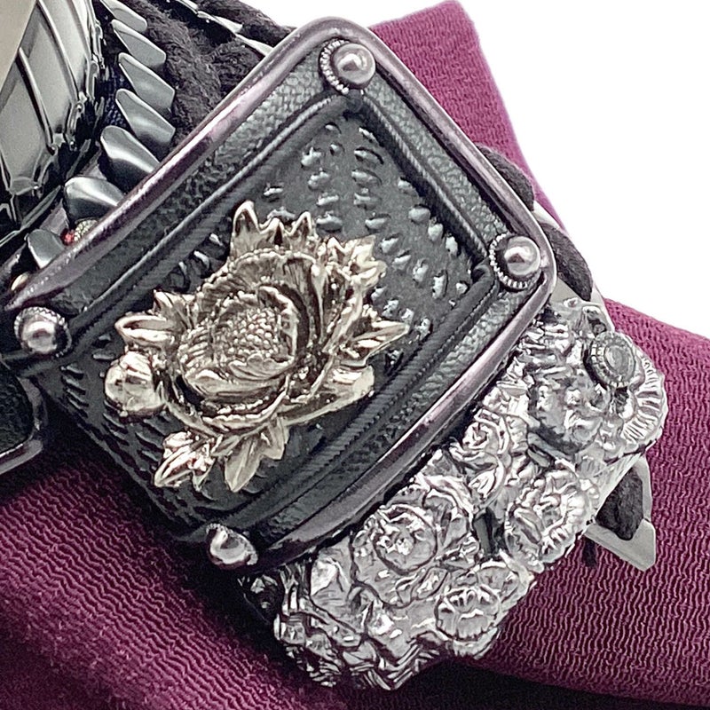 「小札」(こざね)または「札」とは、甲冑を構成している小さな短冊状の板のことです。また、絲(いと)でつなぎ合わせることを縅(おどす)すといい、その絲(いと)を縅絲(おどしいと)と呼びます。 この縅の色柄によって〇〇縅と呼ばれます。