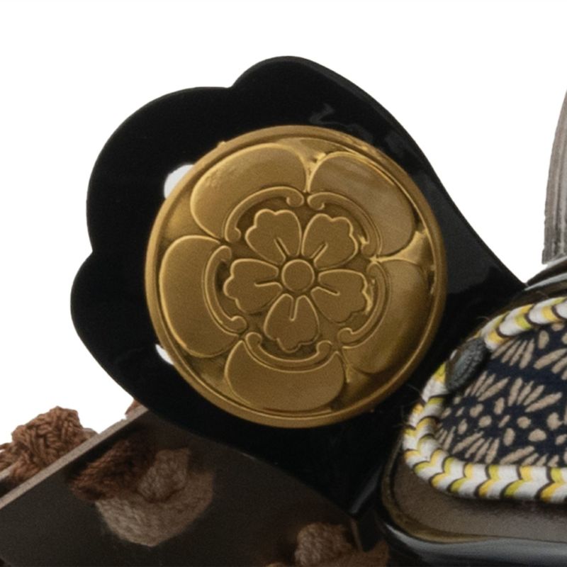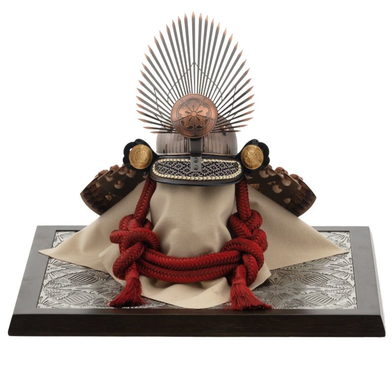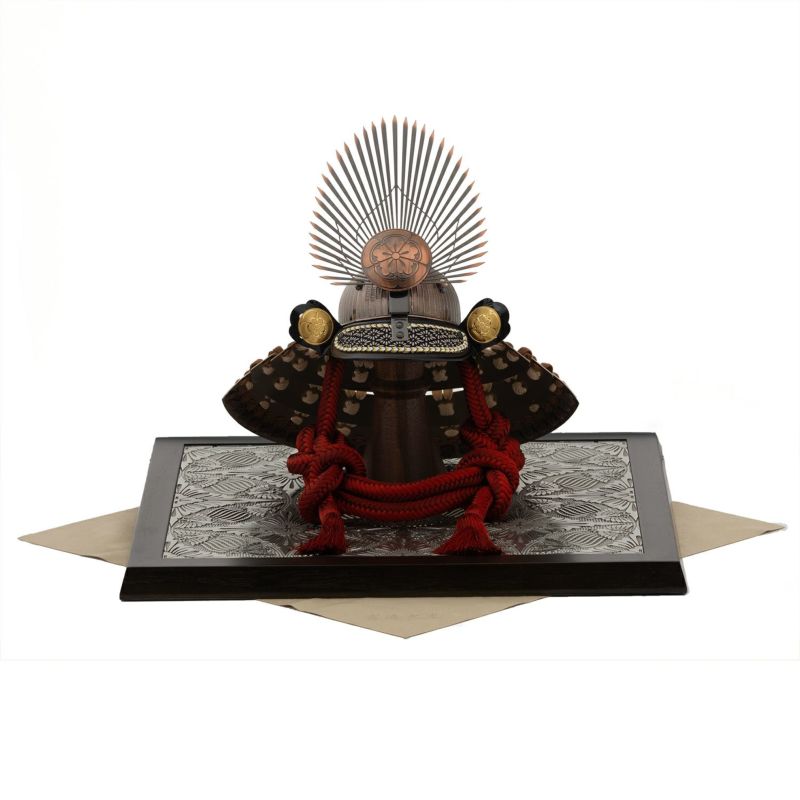 吉祥文様を描いた電鋳プレートが兜の美しさを引き立てます。