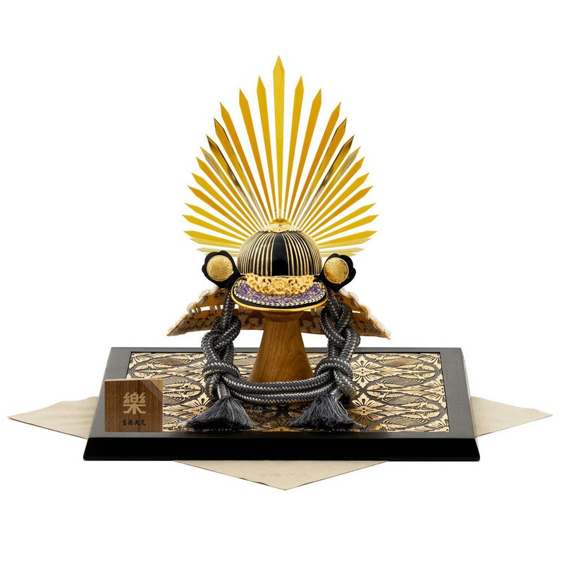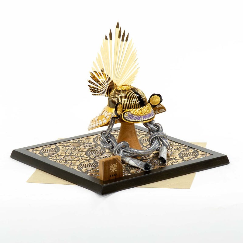 ■同梱されている皺になりにくいラムース素材の袱紗を用い、芯木に掛け兜を載せ飾ることも出来、または飾り台の下に敷いてお飾りする事も出来ます。