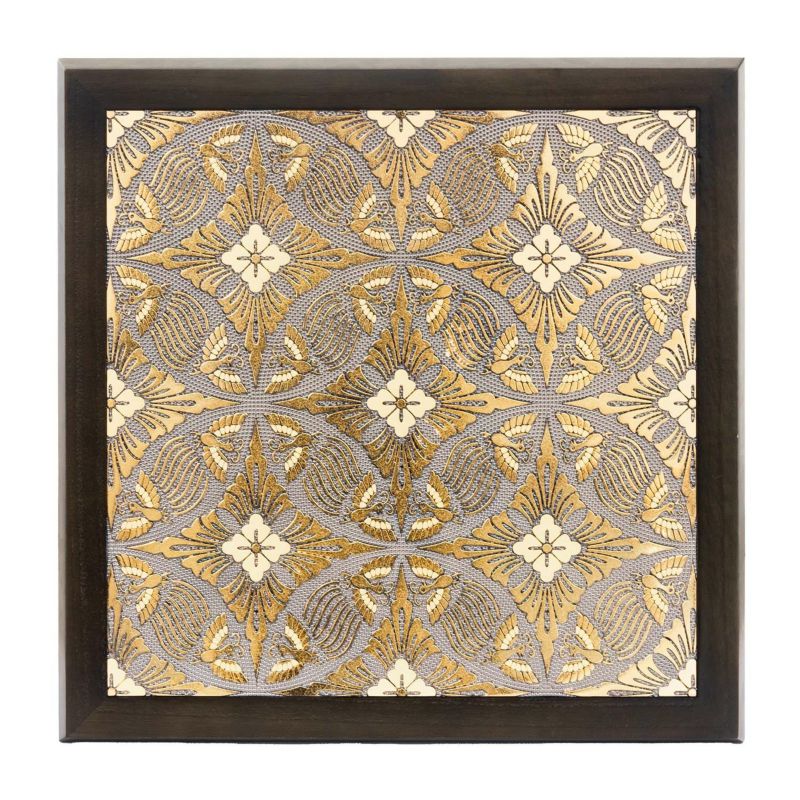 飾り台には、世界最高峰の金属表面加工技術といわれる日本の「電鋳技術」で飾り台に鳥襷(とりだすき)文様の美しいレリーフを彫り込みました。