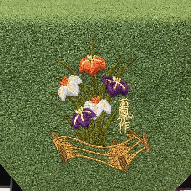 ■緑色の袱紗には「菖蒲の花」を刺繍。