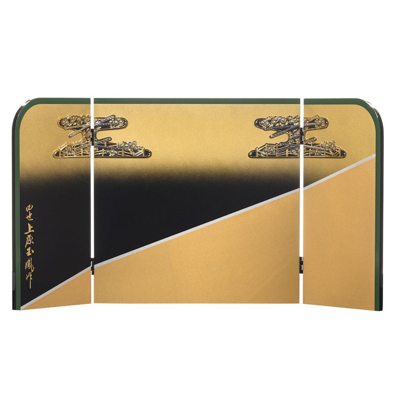 ■彫金で「菊と笛」を表現した屏風。