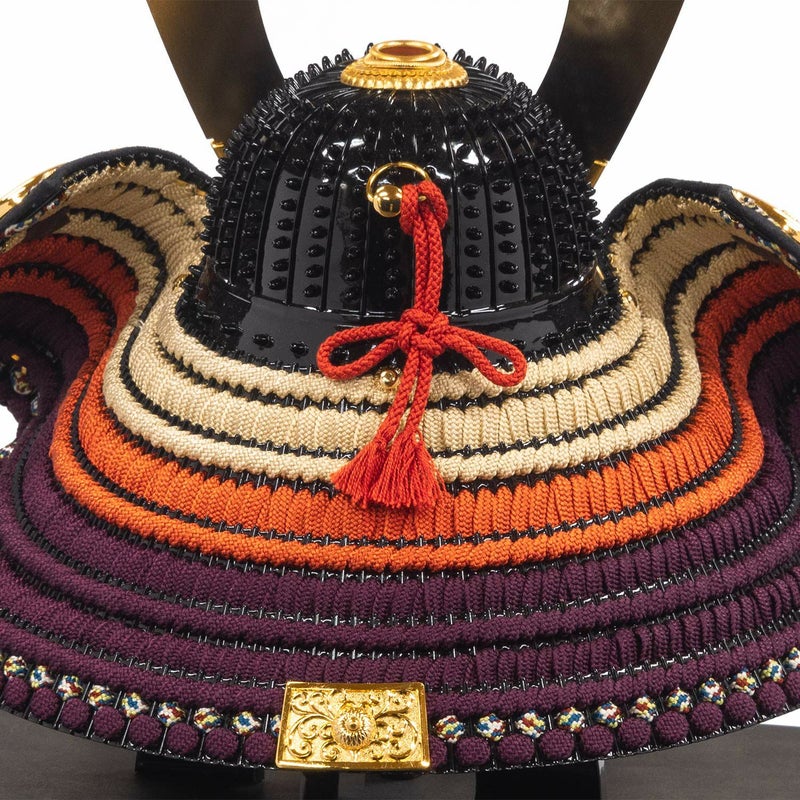 ■鍛金技法により鈍(なま)した銅を叩き出す作業を繰り返し、兜鉢の前後に膨らみをもたせ、これにひとつずつ丹念に総数約300個近くの細かな星鋲を手仕事で埋め込んだ大変手間のかかる兜です。
