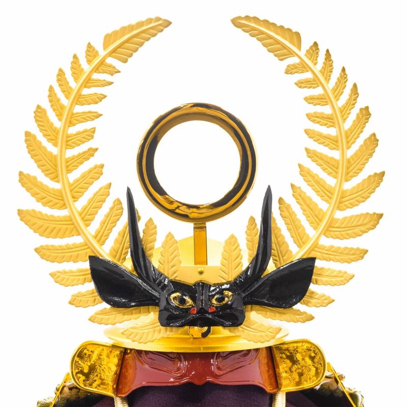 ■金色の大黒頭巾形に金色の歯朶之葉前立が印象的な兜。