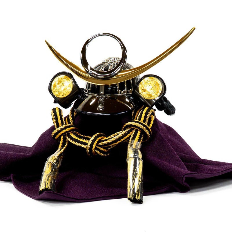 日月前立兜が印象的な上杉謙信公の兜収納箱飾り。
