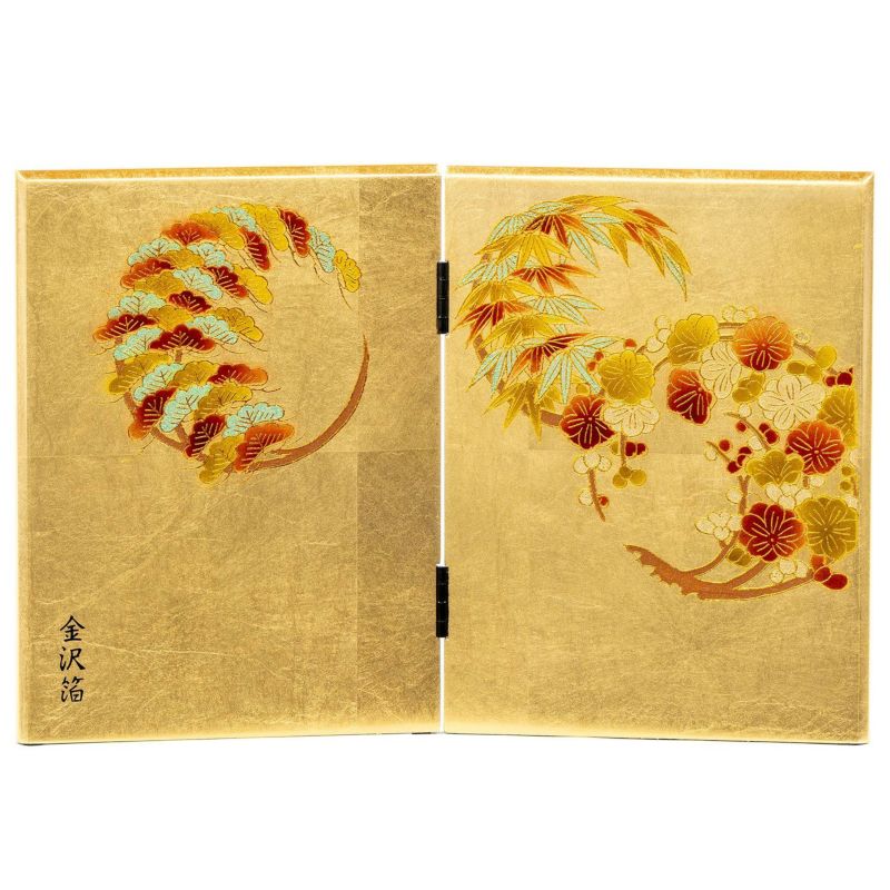 ・屏風:二曲箔押し花丸松竹梅模様