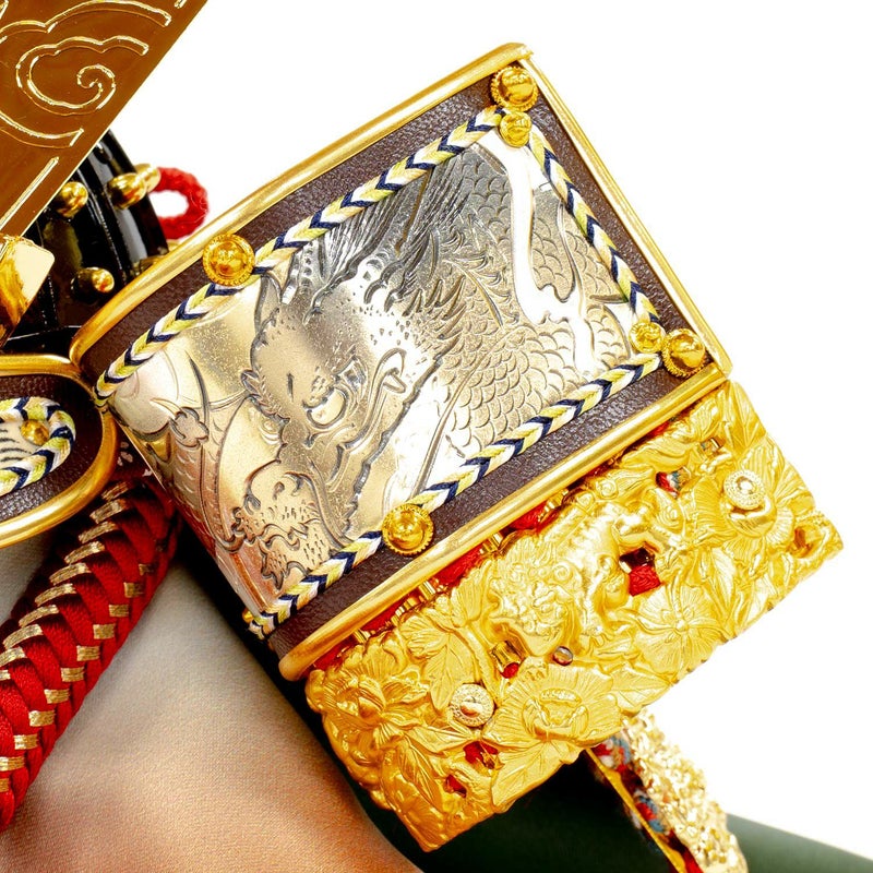 ■兜の吹返しには、出世の象徴の「龍」を彫金で仕上げました。