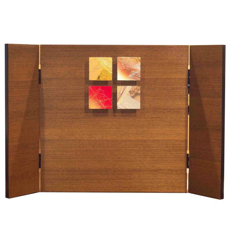 ■木目の美しい屏風には金彩のレリーフを用いました。