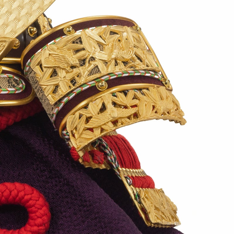 ■兜の鍬形台、吹返し、兜後ろには、春日大社所蔵の国宝兜の「竹と雀」の金具を用いました。