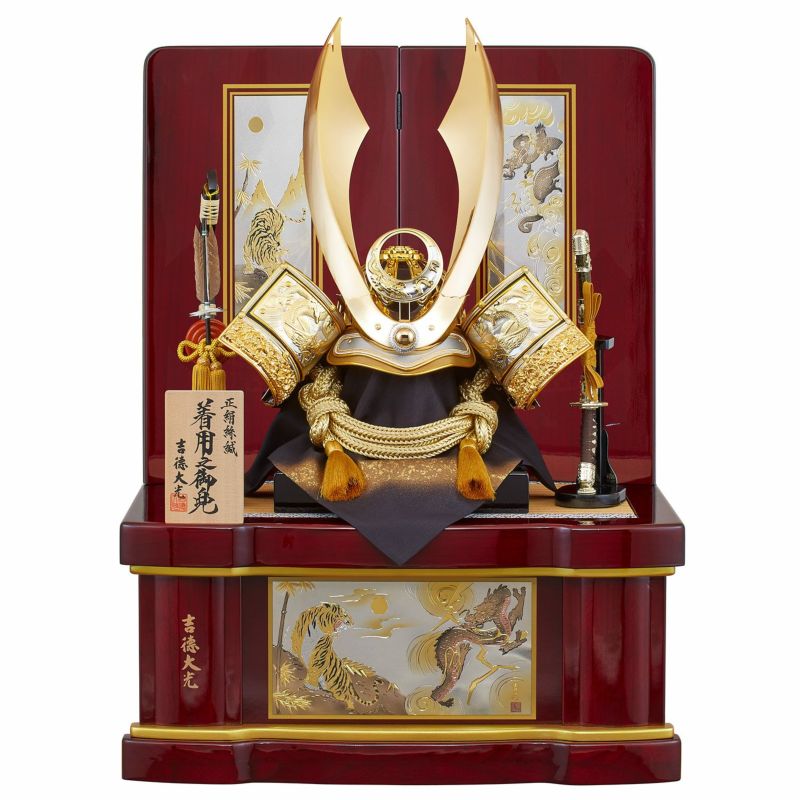 ■龍虎のように強くたくましく成長できますようにと願いを込めた着用兜収納箱飾りです。