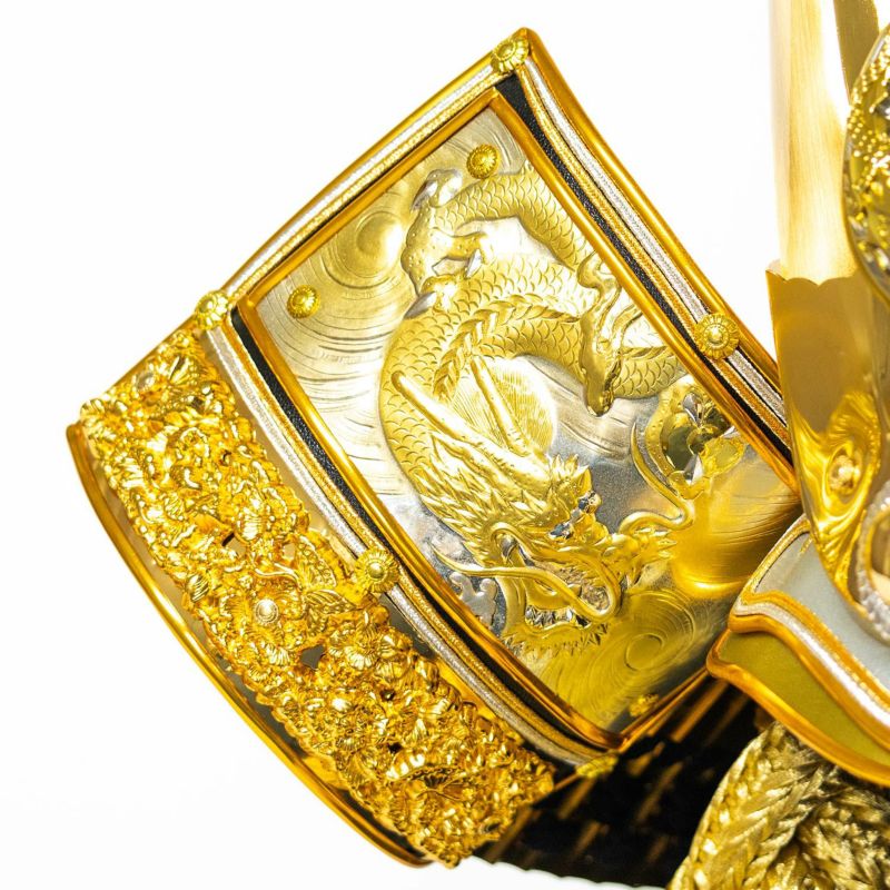 ■兜の前立には出世の象徴「龍」を盛上げでデザイン。