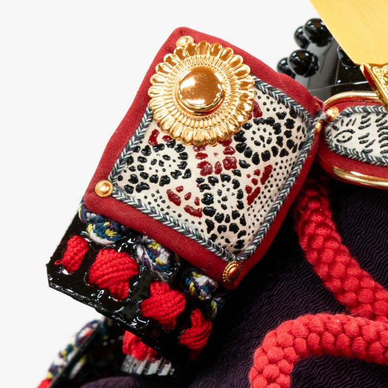 「江戸甲冑」ともよばれ、主に平安、鎌倉時代の現存の国宝等を模写縮小して作られたもの。国宝の大鎧の小札には主に牛革が用いられていますが、この和紙小札シリーズの甲冑は小札に和紙をカシュー漆等で塗り固めたものを用いて再現しています。