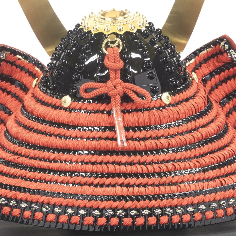 兜はきめの細かい赤絲縅で仕上げた細小札仕立。