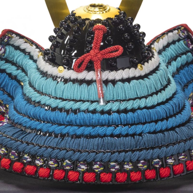 正絹の紺糸を用い、グラデーションを綺麗に表現した和紙小札兜床飾り。