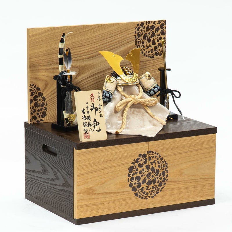 ■幅40㎝とコンパクトながらも美しい兜を用いた収納箱飾り。