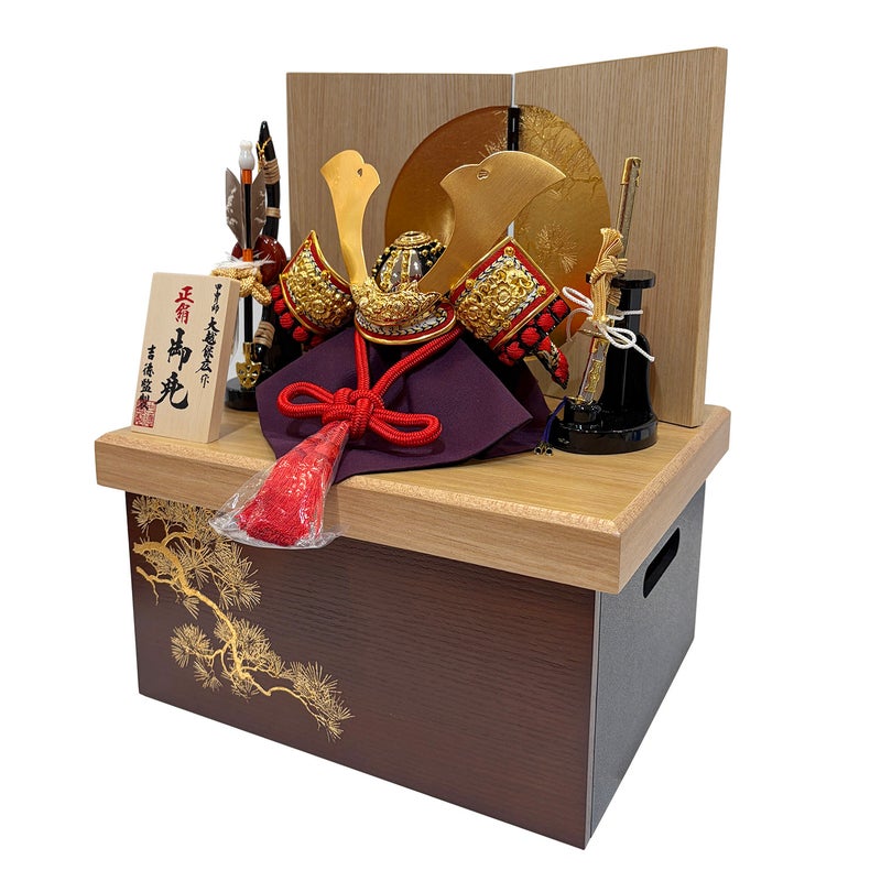 幅30㎝とコンパクトながらも美しい兜を用いた収納箱飾り。