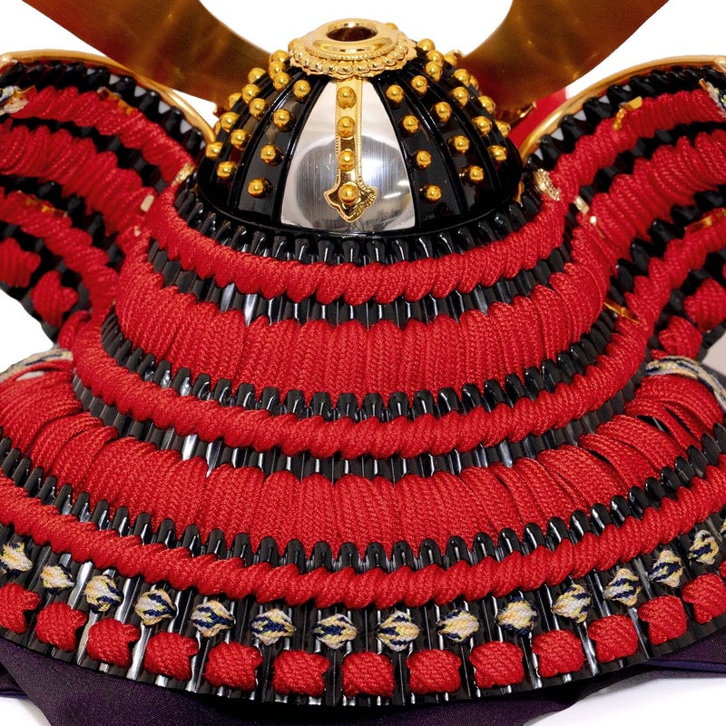 ■甲冑師・大越保広作の黒小札正絹赤絲縅5号兜
