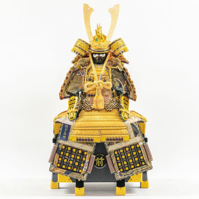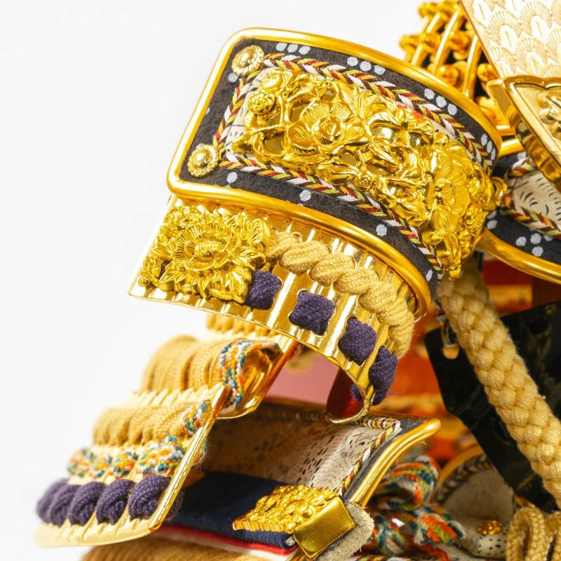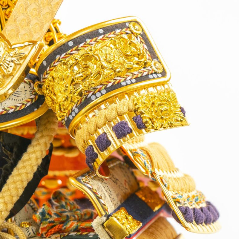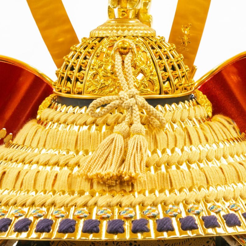 また小札(こざね)は純金箔を一枚一枚丹念に貼った純金箔押しを施し、その上から透き漆を塗った白檀塗(びゃくだんぬり)が仕上げの、手の込んだ造りとなっています。