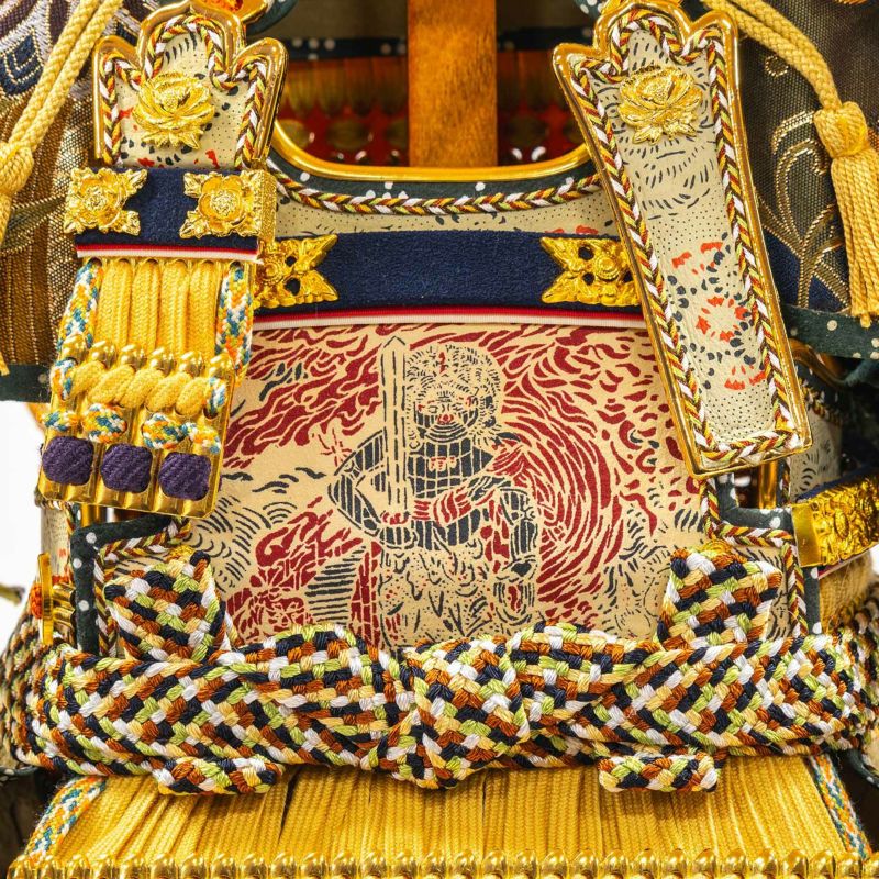 鎧の弦走には、すべての厄災を退けるという「不動明王」を描き迫力を出しました。