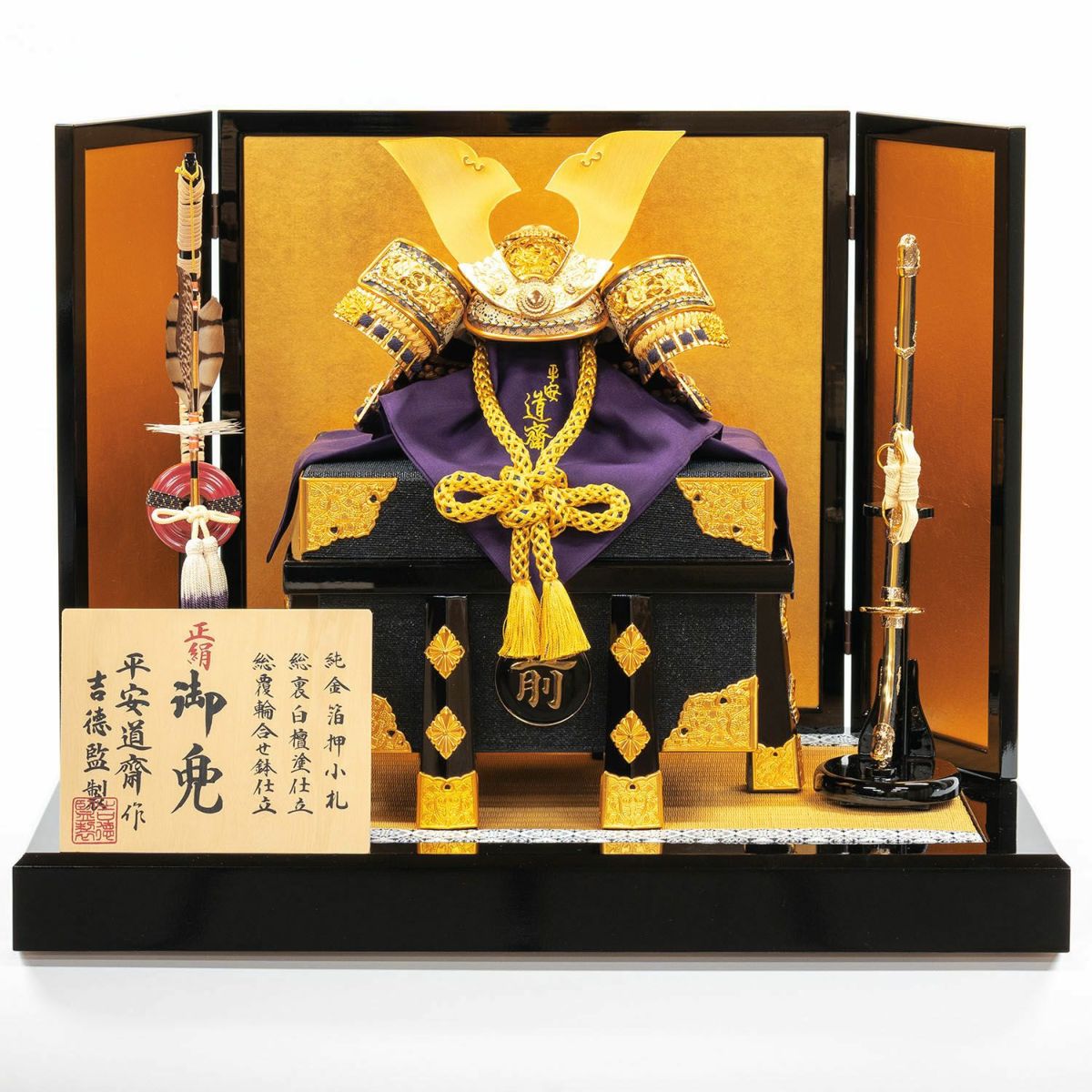 【五月人形】正絹紫裾濃縅 和紙小札1/4兜床飾り 加藤鞆美作