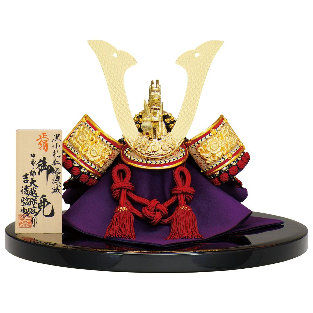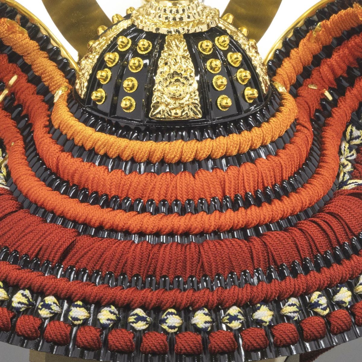 【五月人形】正絹紅裾縅 兜8号曙塗丸盆飾り 大越保広作