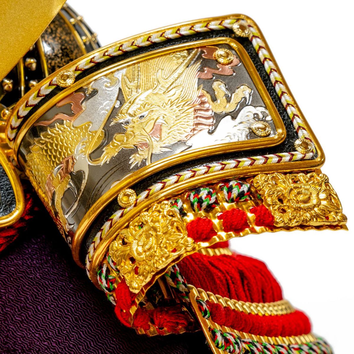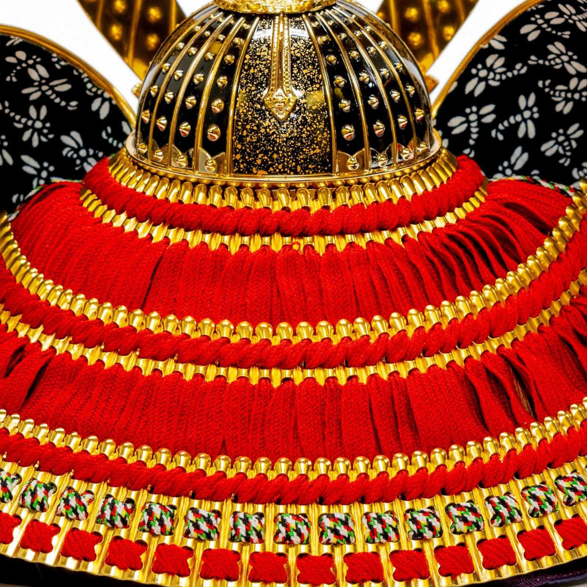 【五月人形】正絹赤絲縅 純金箔押 兜10号収納箱飾り