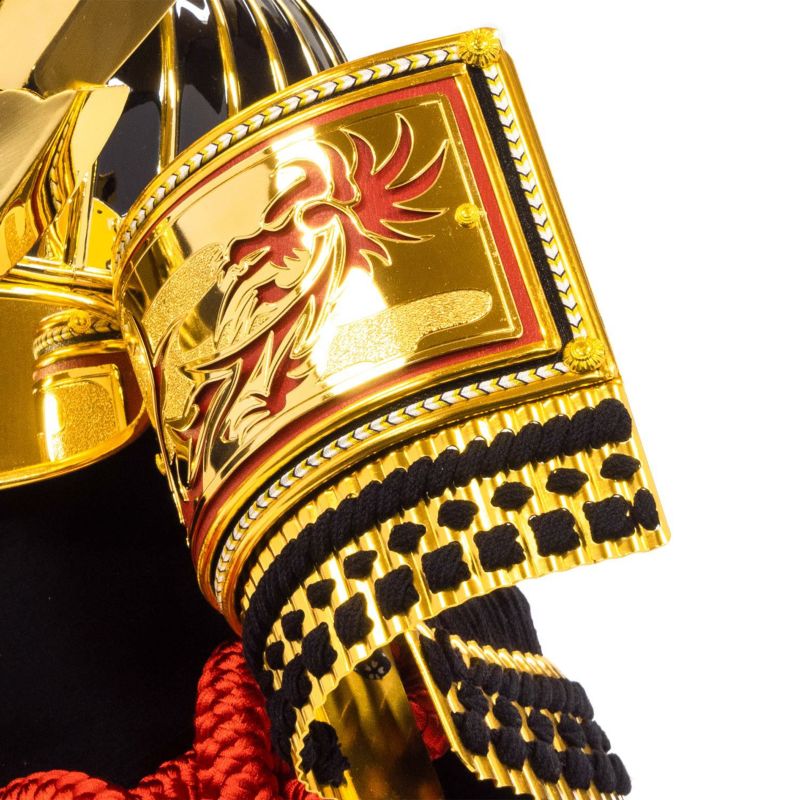 立体的鍬形を用いた兜の吹返しには、龍を描きました。