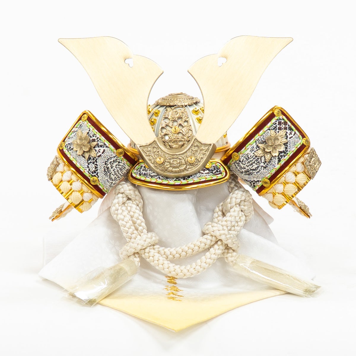 【五月人形】白黄色絲縅兜6号収納箱飾り