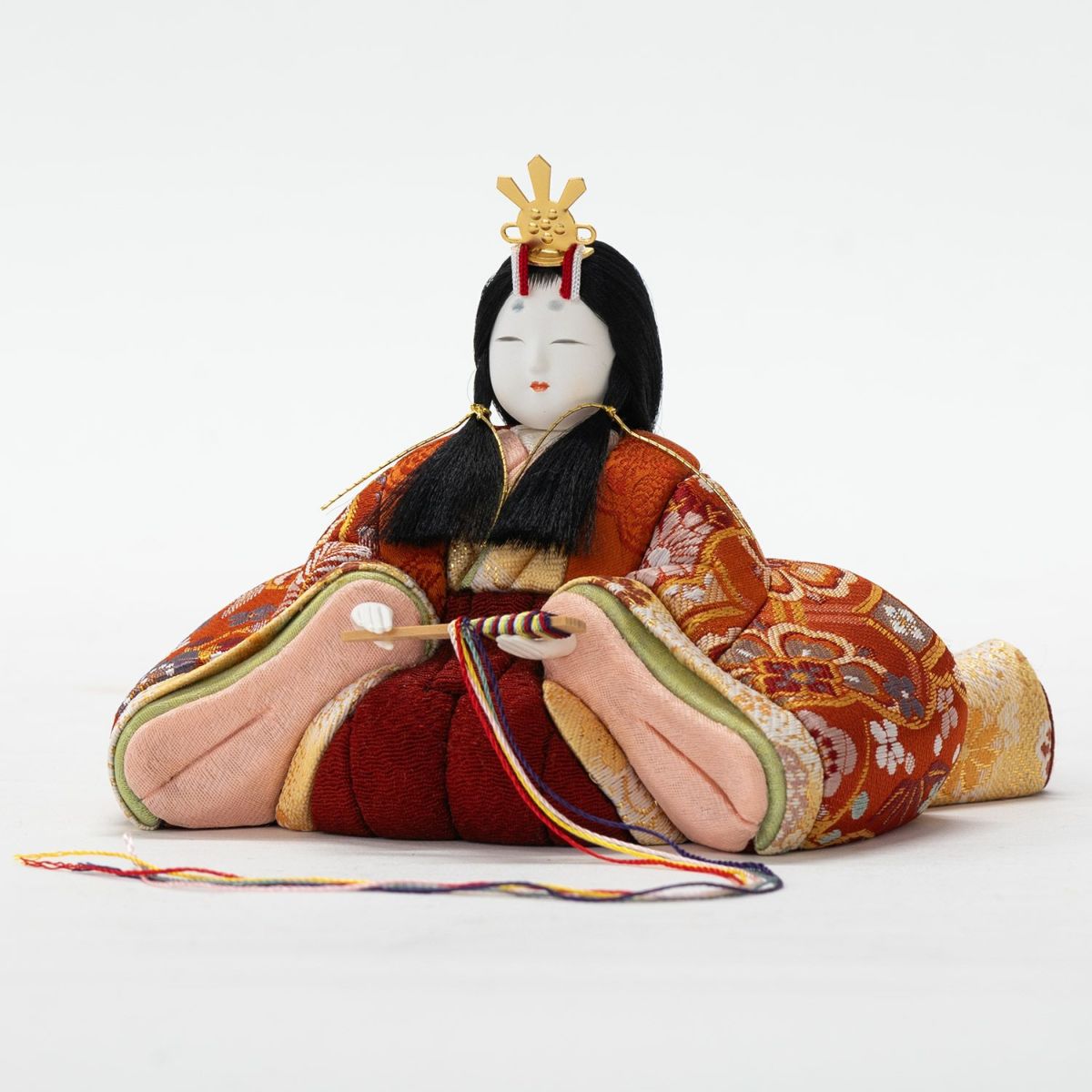飾り台となる箱の中にお人形やお道具がすべて収納できる、スペースを取らない雛人形です。