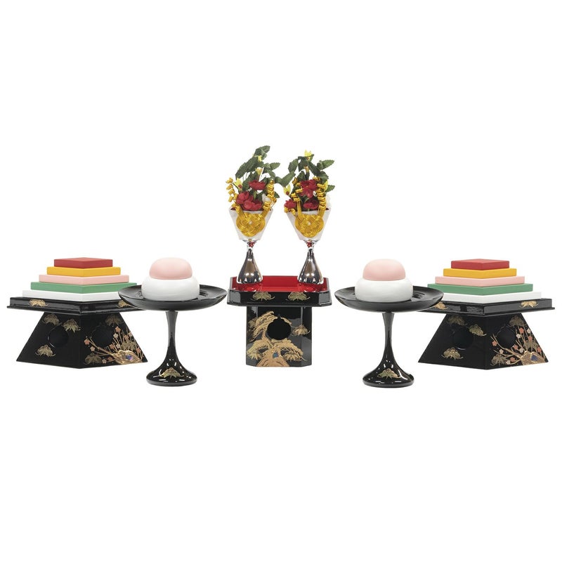 ■おめでたい柄の「松竹梅」を描いた雛道具。