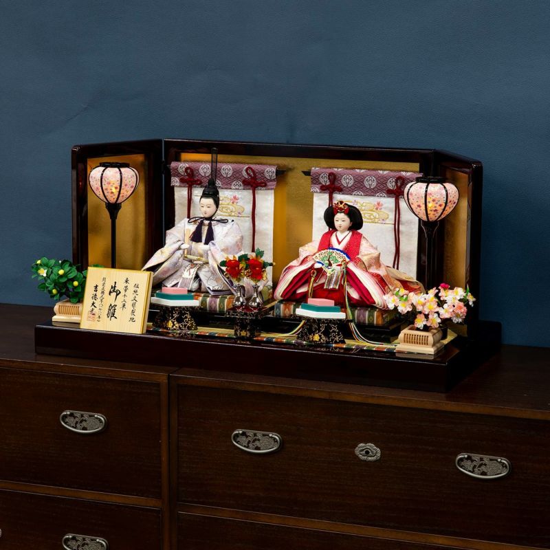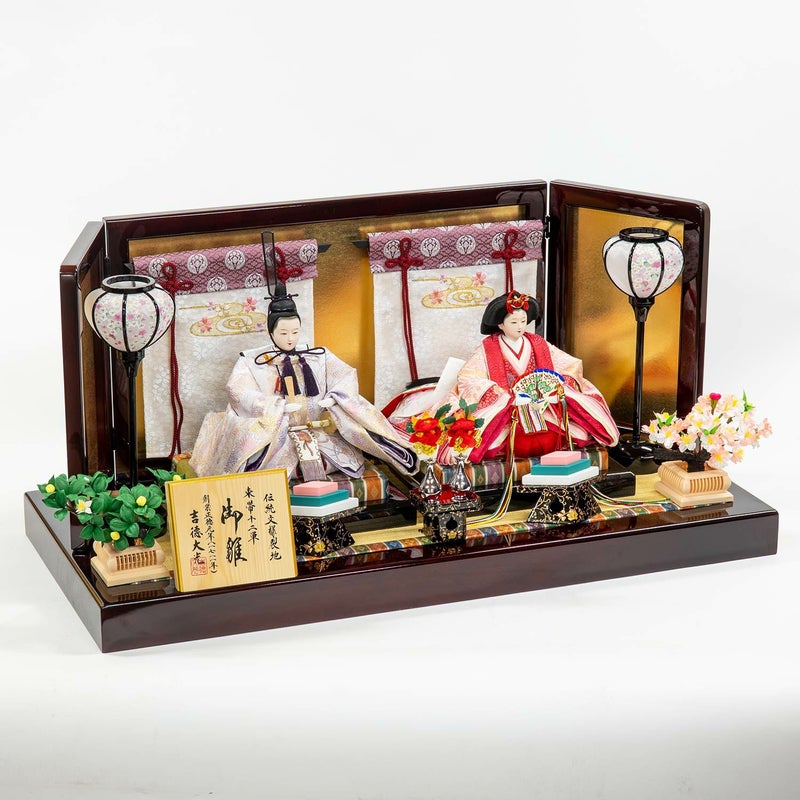 「古典感覚」と「現代的な愛らしさ」とを巧みにミックスした、人気の親王飾りです。