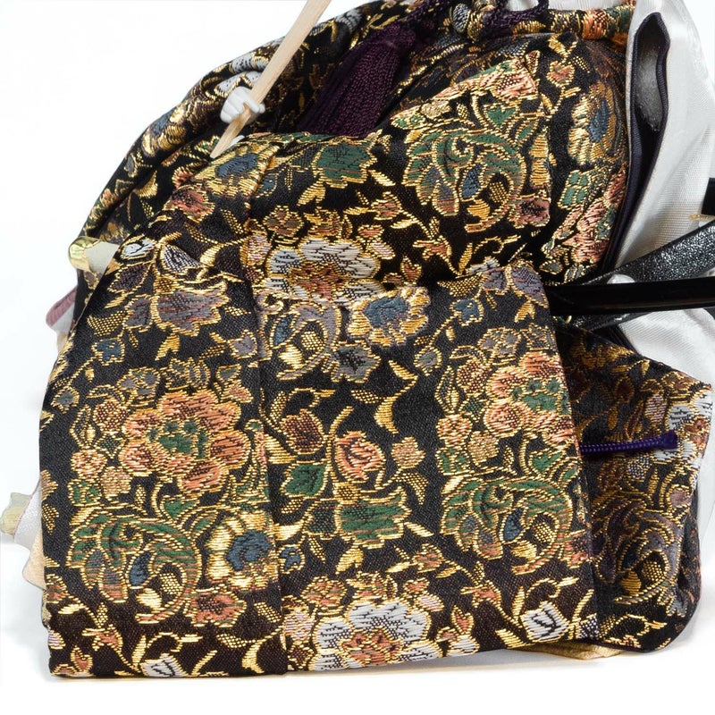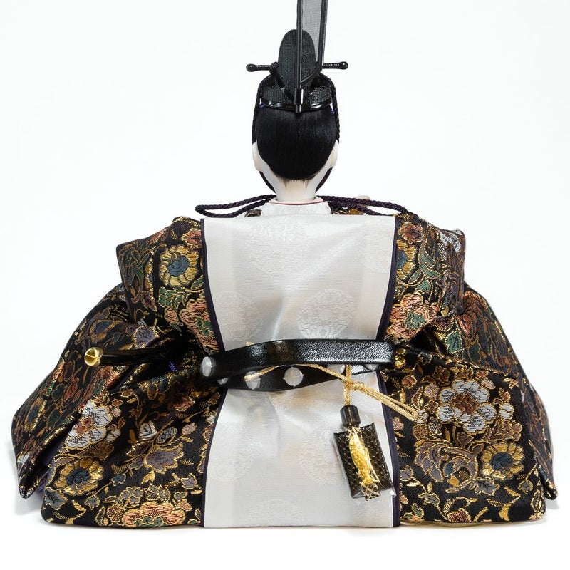 ■黒を基調とした上品な色合いの伝統文様衣裳を着せ付た男雛。