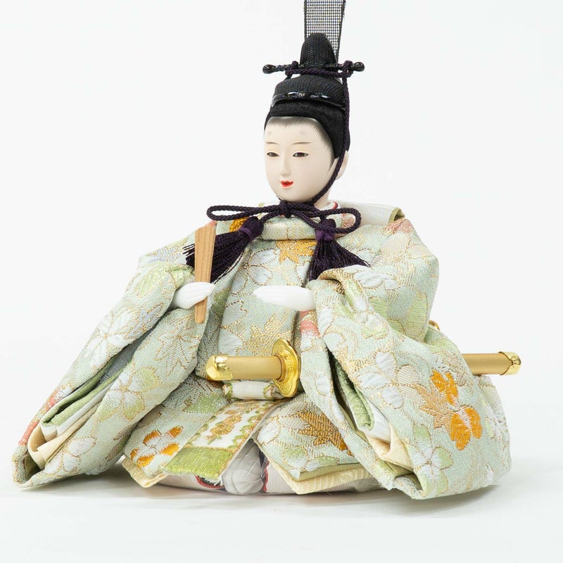 ■男雛は若草色に桜を織り出した衣裳を着せ付け。